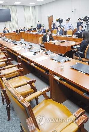 20일 오후 국회에서 열린 국회 운영위원회 전체회의에서 더불어민주당 의원들이 여야간 합의가 되지 않은 상태에서 운영위 개회를 했다며 퇴장한 가운데 의원들이 의사진행발언을 하고 있다.
