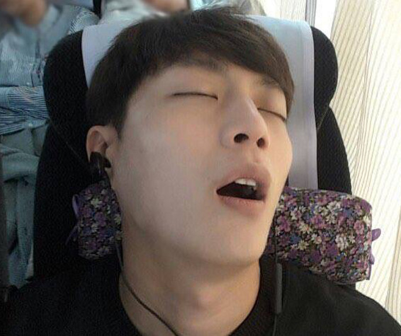 ‘잠들면 뜬다! 몰카에 흔한 뭉뜬 패키지 여행객의 기내 모습’라는 사진 속에서는 윤두준이 비행기에서 입을 벌린 채 자고 있는 모습이다.
