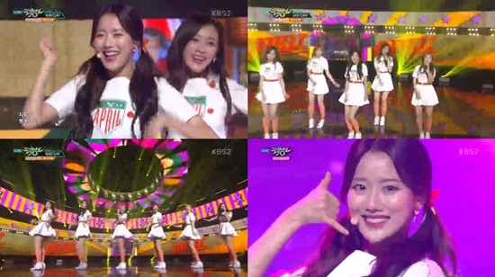 이날 에이프릴은 상큼발랄한 의상을 입고 완벽한 군무로 'MAYDAY' 무대를 소화했다.