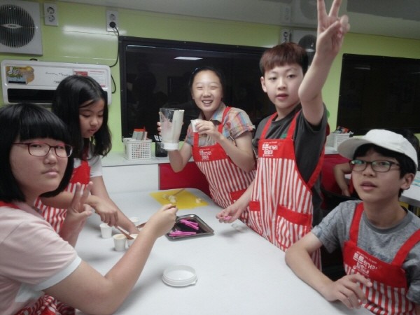 경기 부천시 동곡초등학교는 오는 30일까지 ‘놀면서 배우는, 달리는 건강놀이터, 튼튼 먹거리 탐험대’ 프로그램을 운영한다. 사진은 지난 26일 프로그램에 참여한 학생들이 '저당 바나나아이스크림 만들기'를 하며 즐거워하는 모습.(사진제공=부천교육지원청)