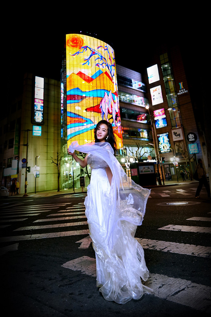 지난해 2월 서울 중구 명보아트홀 건물 외벽의 미디어파사드를 통해 윤송아의 작품이 공개된 이후 올해 6월부터 매일 저녁 7시30분부터 자정까지 상영되고 있다.