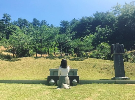 공개된 사진 속 그는 가네코 후미코의 묘지 앞에서 예를 갖춘 모습으로 네티즌들의 눈길을 사로잡았다.