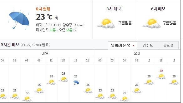 현재 대전은 23도로 소나기가 내리고 있다. 강수량은 .7.6.mm다. 천둥번개와 소나기가 급속도로 내리고 있지만 멈췄다가 다시 또 내리는 등 변덕스러운 날씨를 보이고 있다