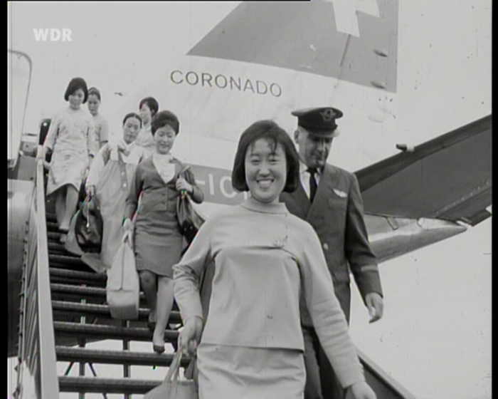 1부에서는 1960~70년대 한국과 독일이 각각 노동력을 송출하고 유입하게 된 배경, 젊은 간호 여성들이 독일행을 선택하게 된 계기와 떠남을 준비했던 과정을 관련 유물과 함께 전시한다. 콘테이너 박스로 구성된 공간에서 들리는 기내 영상과 음성을 통해 인력수출과 독일로의 떠남을 나타냈다.