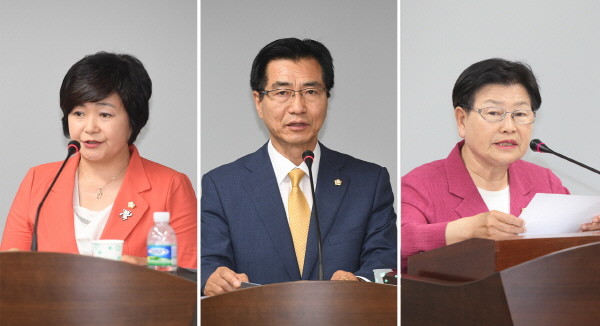 | ▲ 사진은 서울 영등포구의회 (왼쪽부터) 김길자·고기판·박정자 의원이 대표 발의한 조례안을 설명하고 있는 모습.(사진제공=영등포구의회) | ||