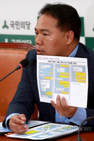 19대 대선 당시 국민의당 공명선거추진단장을 맡았던 이용주 의원이 28일 오후 국회 당대표실에서 ‘문준용 의혹제보 조작’파문과 관련해 기자간담회를 갖고 이유미 씨의 SNS 대화 내용을 설명하고 있다.
