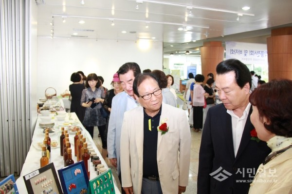 이영철 서울 강서구의장은 지난 29일 오전 10시 강서구민회관에서 열린 ‘제38기 여성교양대학 수료식 및 작품전시회’에 참석했다. 사진은 이 의장과 노현송 구청장, 탁수명 부의장 등이 작품전시회장을 둘러보고 있는 모습.(사진제공=강서구의회)