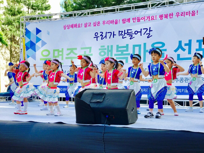 | ▲ ‘우면 주공 행복마을 선포식’에서 진행된 아이들의 깜찍한 공연 모습. | ||