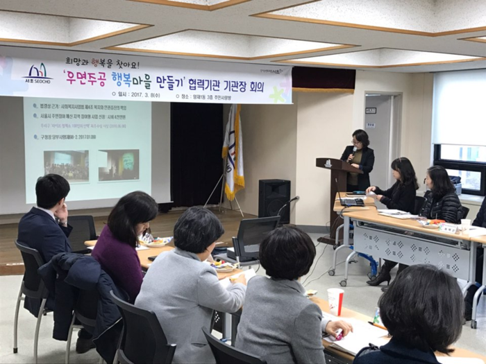| ▲ 지난 3월 열린 ‘우면주공 행복마을 만들기’를 위한 협력기관 기관장 회의의 진행 모습. | ||