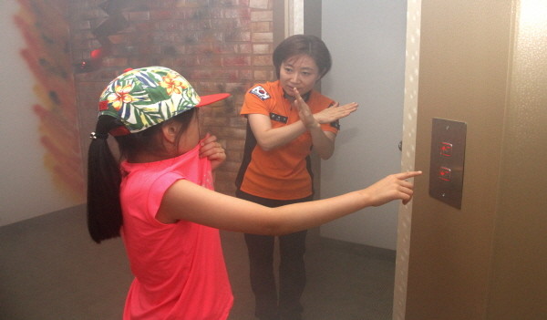 서울 은평소방서는 4일 오전 은평구에서 주관하는 '내 고장 견학교실'의 일환으로 소방서를 방문한 증산초등학교 학생 35명을 대상으로 안전체험 학습을 실시했다. 사진은 '열·연기 피난탈출 체험'이 진행 중인 모습.(사진제공=은평소방서)