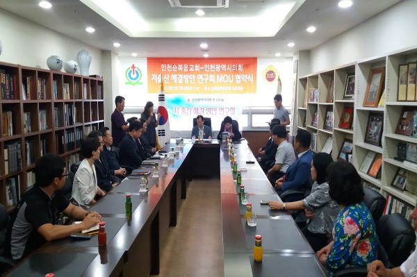 | ▲ 지난 5일 인천시의회 저출산 해결방안 연구회 대표 박영애 의원과 이강호 부의장이 인천순복음교회 관계자들을 만나 '저출산 문제 해결 상호 협력체계 구축을 위한 업무협약'을 체결했다. | ||