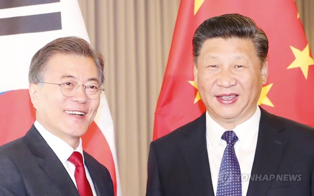 문재인 대통령과 시진핑 중국 국가주석이 6일 오전(현지시간) 베를린 인터콘티넨탈 호텔에서 열린 한-중 정상회담에서 환하게 웃고 있다.