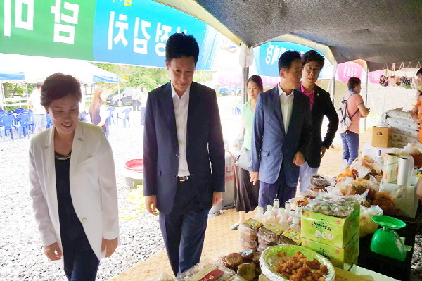 경기 포천시는 지역의 대표적 관광명소인 포천아트밸리 주차장에서 오는 9월15일까지 지역의 우수 농·축·특산품을 판매하는 ‘직거래 장터’를 개최한다. 사진은 지난 8일 열린 직거래 장터 개막식에 참석한 김종천 시장(왼쪽 두번째)등 관계자들의 모습.(사진제공=포천시청)