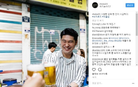 최자는 최근 자신의 SNS에 한 장의 사진과 함께 “시원한 길맥 한 잔이 시급하다 #최자로드 #여름밤”이라는 글을 게재했다.