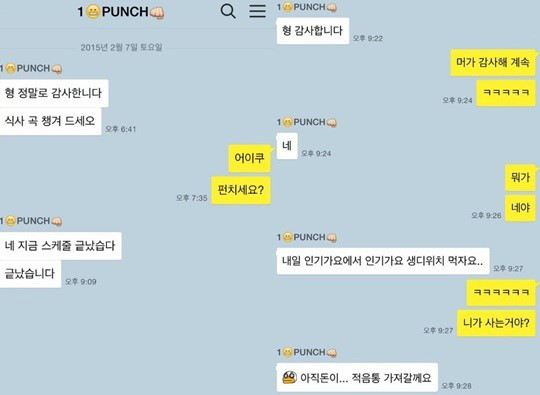 정용화는 과거 자신의 SNS에 원펀치 멤버 사무엘과 함께 나눈 대화를 공개했다.