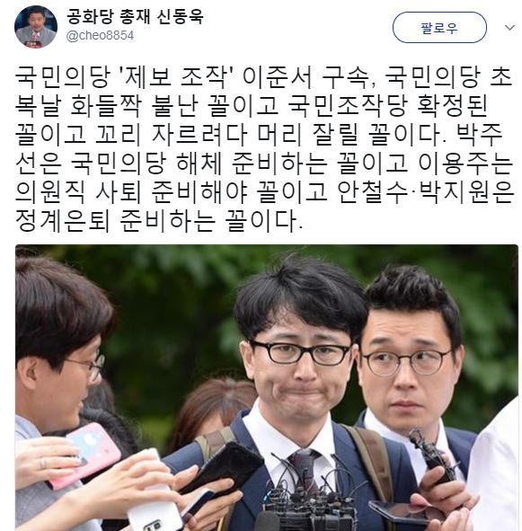 공화당 신동욱 총재가 국민의당 이준서 전 최고위원의 구속에 일침을 가했다.