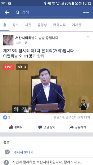 [서산=장인진 기자] 충남 서산시의회는 11일 열린 임시회부터 본회의를 페이스북 등 SNS로 실시간 송출을 시작했다고 밝혔다.