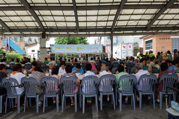 경기 양주시 남면주민자치위원회와 대한어머니회 양주시지회, 교통장애인협회 희망봉사단은 지난 11일 신산시장에서 지역내 노인 150여명에게 짜장면을 대접하는 ‘행복 짜장 나눔’ 행사를 했다. 사진은 노인들이 식사하는 모습.(사진제공=양주시청)