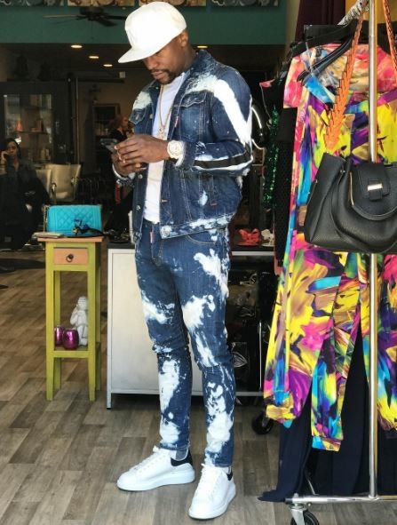 게대죈 사진 속에는 메이웨더가 독특한 패턴의 청자켓, 청바지를 입고 있으며 흰색 모자와 스니커즈를 신었으며 화려한 악세사리로 포인트를 줘 완벽한 힙합 스웨그를 뽐냈다.