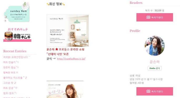 윤손하는 지난 2009년 부터 자신의 블로그에 일상을 공개하며 일본 팬들과 소통해왔다. 현재 윤손하의 블로그 구독자 수는 35,528명.
