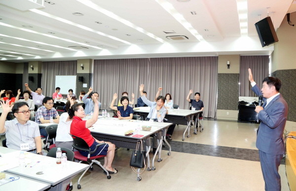경기 용인시는 지난 12일 포곡읍 대웅경영개발원에서 주민참여예산 위원회 위원들의 역량강화와 제도 활성화를 위한 워크숍을 개최했다. 사진은 워크숍에 참여한 정찬민 시장이 인사말을 하는 모습.(사진제공=용인시청)
