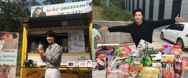 공개된 사진 속에는 윤시윤이 팬들이 보낸 커피차와 간식 등 앞에서 환한 미소를 지으며 개구진 포즈를 취하고 있어 눈길을 끌었다.