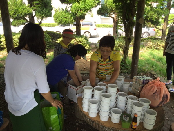 전남 장흥군 여성자원봉사회는 최근 장흥읍, 부산면, 안양면, 관산읍에 거주하는 지역내 홀몸 노인 및 취약계층 40가구를 대상으로 밑반찬 전달 및 가사봉사활동을 펼쳤다. 사진은 참여자들이 만든 음식을 포장하는 모습.(사진제공=장흥군청)
