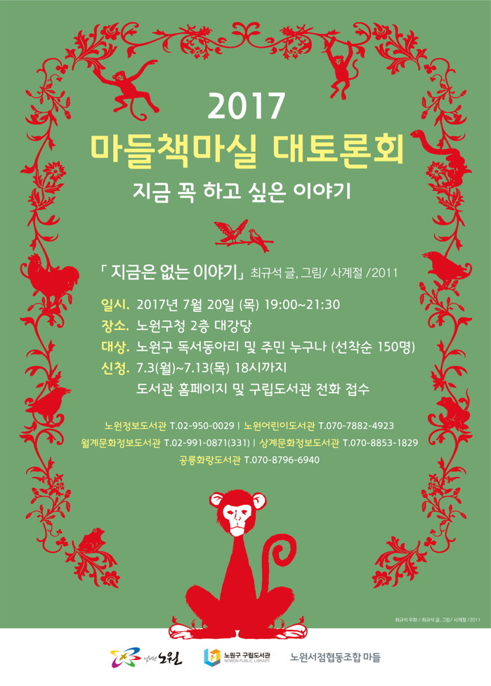 이번 토론회는 남녀노소를 불문하고 전세대가 어울리는 형식으로 진행되며, 우리 사회에 대한 풍자를 우화형식으로 담은 <지금은 없는 이야기>(최규석 저·사계절출판사 출판)를 바탕으로 토론이 진행된다.