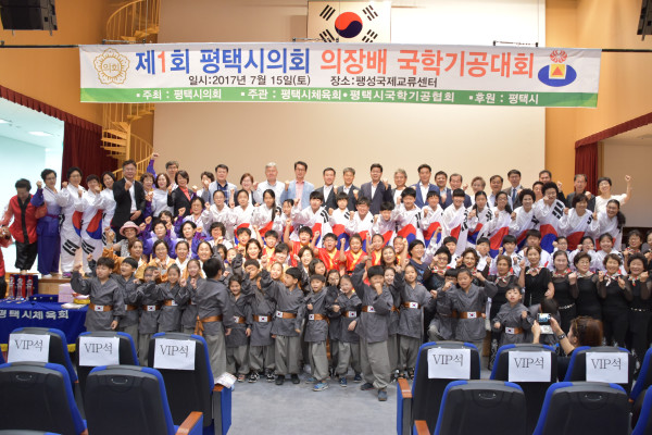 | ▲ 사진은 ‘제1회 평택시의회 의장배 국학기공 대회’에 참여한 관계자들이 기념촬영을 하는 모습.(사진제공=평택시의회) | ||