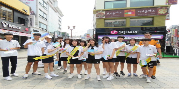 경기 이천소방서는 지난 14일 창전동 로데오거리에서 여름철 물놀이 안전사고 예방 및 안전의식을 고취하기 위해 송정중학교 한국119소년단과 함께하는 안전캠페인을 실시했다. 사진은 참여자들이 기념촬영을 하는 모습.(사진제공=이천소방서)