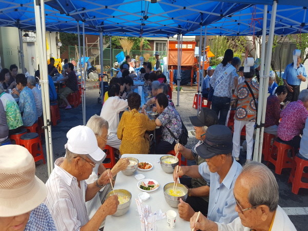 경기 수원시 팔달구 지동 행정복지센터에서는 지난 18일 지역내 저소득 노인을 대상으로 스파 동아리(Susung Forum For Action) 회원들이 직접 만든 콩국수를 대접하는 행사를 개최했다. 사진은 노인들이 콩국수를 맛있게 먹는 모습.(사진제공=팔달구청)