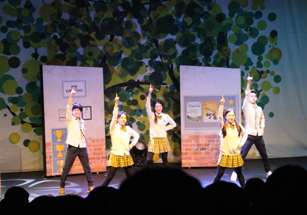 서울 동대문구는 지난 18~20일 지역내 6개 중·고교 총 2000여명의 학생들을 대상으로 학교폭력·왕따 예방 뮤지컬 ‘우린 친구잖아 따로’를 공연했다. 사진은 배우들이 열연을 펼치는 모습.(사진제공=동대문구청)
