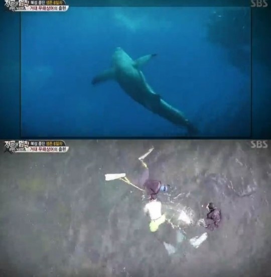 최대 몸길이가 3m에 육박하는 무태상어는 먼저 공격을 받지 않는 한 공격을 하진 않지만, 김병만과 마이크로닷은 안전을 위해 물에서 나와야만 했다.
