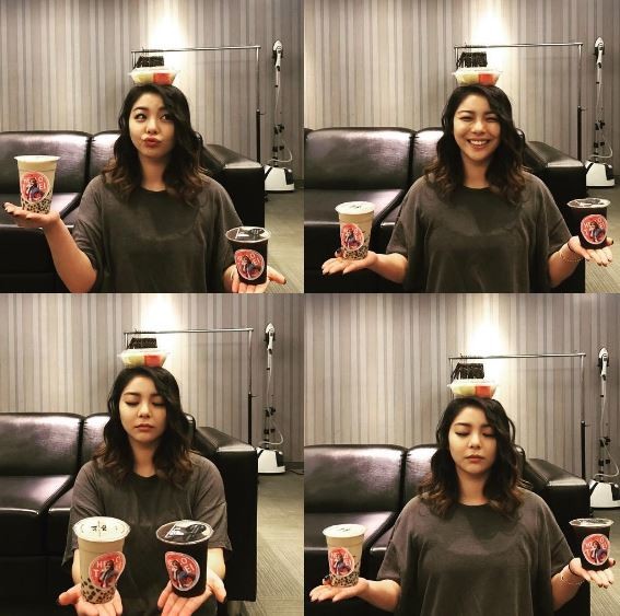 사진 속 그는 양손에 커피잔을 올려두고 정수리에는 간식을 올린 채 장난스러운 모습을 하고 있어 보는 이들의 눈길을 끌었다.