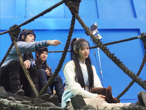 배우 윤아가 ‘왕은 사랑한다’에서 호흡을 맞추고 있는 홍종현, 임시완과의 촬영대기 중인 모습을 공개했다.
