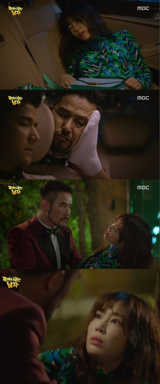 26일 방송한 MBC 수목 드라마 '죽어야 사는 남자'에서 이지영A(강예원 분)이 만취해 실수로 친 아버지 장달구(최민수 분)의 차를 탔다.