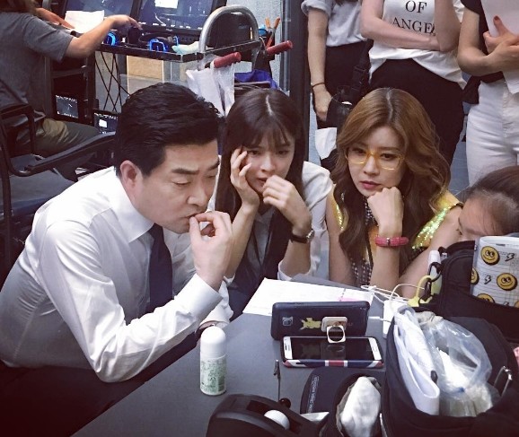 사진 속 이선빈은 배우 손현주와 유선의 모습이 담겨 있다. 특히 세 사람은 핸드폰으로 방송을 심각하게 보고 있어 눈길을 시선을 사로잡았다.