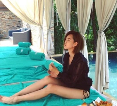 지소연은 최근 자신의 SNS에 "냠냠냠냠. 수영장"이라는 글과 함께 영상을 게재했다.