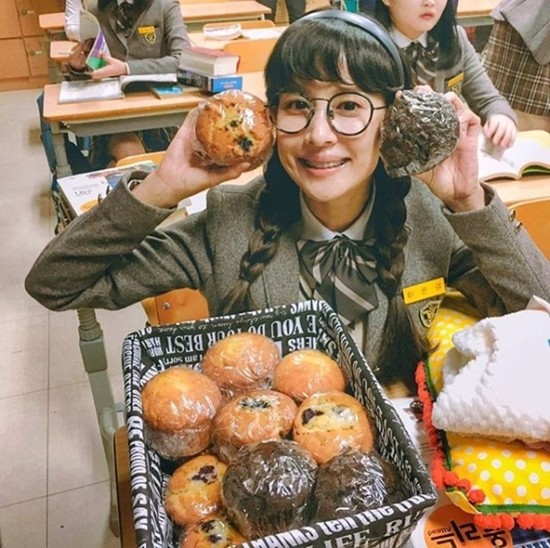 사진 속에는 조여정이 교복을 입고 카메라를 향해 미소 짓고 있는 모습이다. 특히 그의 동안 미모가 돋보이는 양갈래로 땋은 헤어스타일과 작은 얼굴을 가리는 큰 안경이 눈길을 끈다.