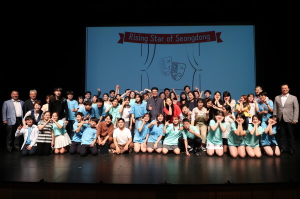 성동구는 최근 성수아트홀 공연장에서 예술적 감성과 재능을 가진 청소년들이 열정적 잠재력을 발산할 수 있도록 돕자는 취지에서 '제3회 성동 청소년 연극제'를 개최했다. 사진은 정원오 구청장과 참가자들이 기념촬영을 하는 모습.(사진제공=성동구청)