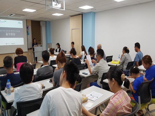 경기 포천시 청소년방과후아카데미는 최근 제1회 학부모 간담회 및 부모교육을 실시했다. 사진은 2017년 청소년방과후아카데미 사업보고와 함께 질의응답이 진행되는 모습.(사진제공=포천시청)