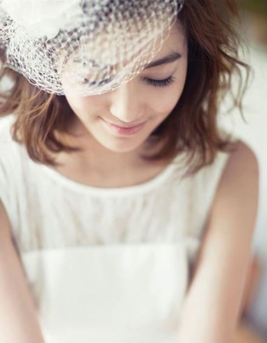 사진 속 이소연은 망사모자를 쓰고 슬리브리스 원피스를 입은채 눈을 감고 있다.