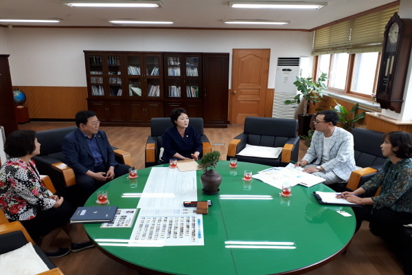 | ▲ 경점순 위원장(가운데)가 김복동 의장(왼쪽 두번째)와 관계자들과 함께 횡단보도 설치 추진을 위한 의견을 나누고 있다.(사진제공=종로구의회) | ||