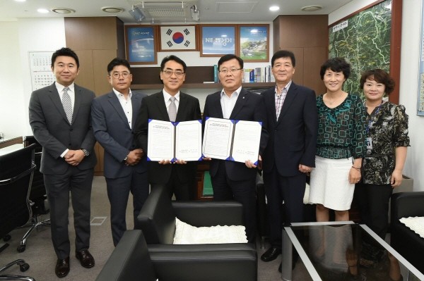 경기 광주시는 최근 SK(주)엔카직영과 압류차량 공매 자동화 시스템 구축을 위한 업무협약을 체결했다. 사진은 관계자들이 협약서를 들고 기념촬영을 하는 모습.(사진제공=광주시청)
