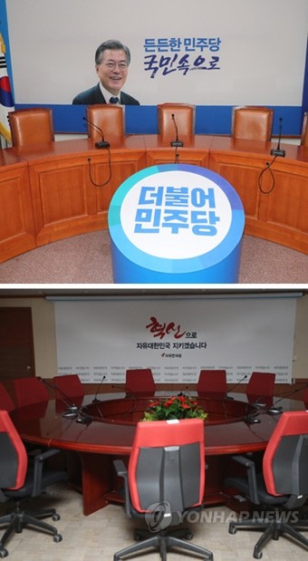 1일 서울 여의도의 더불어민주당(위)과 자유한국당의 회의실이 텅 비어 있다. 여야 지도부는 이달 초까지 일제히 여름 휴가를 떠나 재충전의 시간을 가진다.