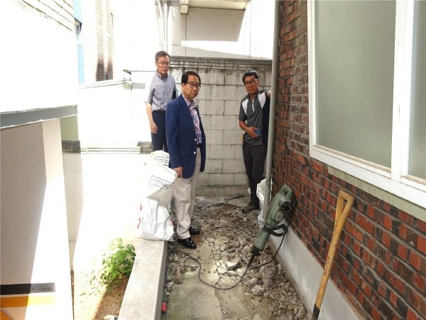이날 이 의장은 구청 관계자와 함께 현장 곳곳을 살피고, 공사 관계자을 통해 진행 상황을 설명 받았다.