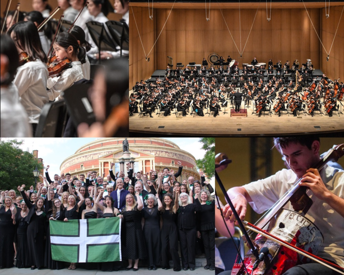 | ▲ 좌측 상단-서울학생필하모닉오케스트라/ 우측 상단–UN오케스트라, 서울시민필하모니오케스트라 연합공연좌측 하단 – 노스데본신포니아/ 우측 하단 – 카테우라재활용오케스트라 | ||