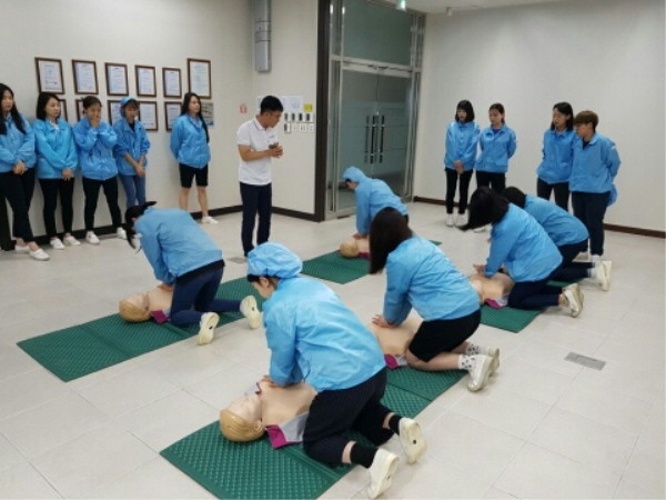 경기 수원시 권선구는 최근 수원 산업3단지 (주)크레모텍 수원공장에서 관계직원 등을 대상으로 '골든타임 사수! 찾아가는 생명구조교육'을 실시했다. 사진은 참여자들이 심폐소생술 실습을 하는 모습.(사진제공=권선구청)