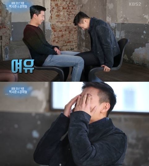 이날 즉석에서 열린 허벅지 씨름에서 강하늘은 박서준에게 2연패를 했다. 강하늘은 "이거 편집해 주시면 안 되냐"고 애원해 웃음을 자아냈다.