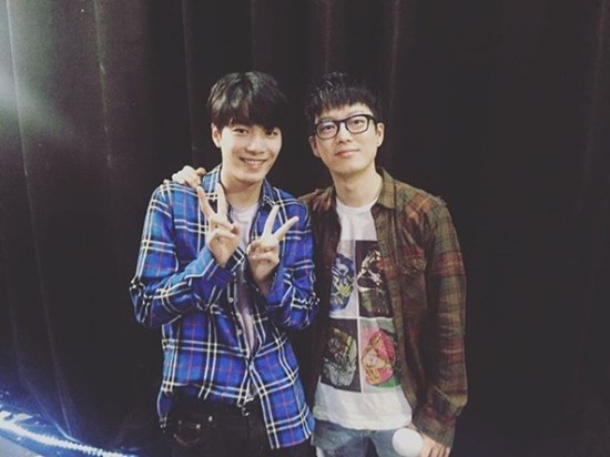 사진 속에는 김종현과 가수 하현우가 우월한 비주얼을 뽐내며 다정하게 포즈를 취하고 있다.
